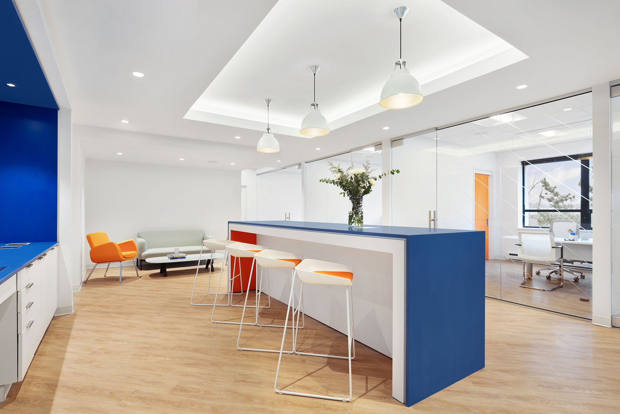 We love partnering with a client who is intentionally trying to disrupt an industry and create something entirely new and ownable. While we were able to successfully achieve this in the unique mobile environment, the challenge was to bring that same feeling of surprise and delight to the more familiar clinic setting. To achieve this, we replaced the typically bland and boxy treatment rooms with angled and glass partitions and utilized a material palette of warm wood tones and bright, brand colors not usually found in clinical environments. Overall, the design is carefully calibrated to project both a high level of established professional expertise, as well as the warm, welcoming nature of the brand. The same general palette is woven through the adjacent office spaces to reinforce the important continuity and connection between the corporate planning and patient facing work of the company.