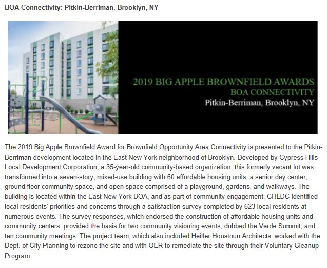 We are also proud to announce that one of our affordable housing units in Brooklyn has won the 2019 Big Apple Brownfield Award!