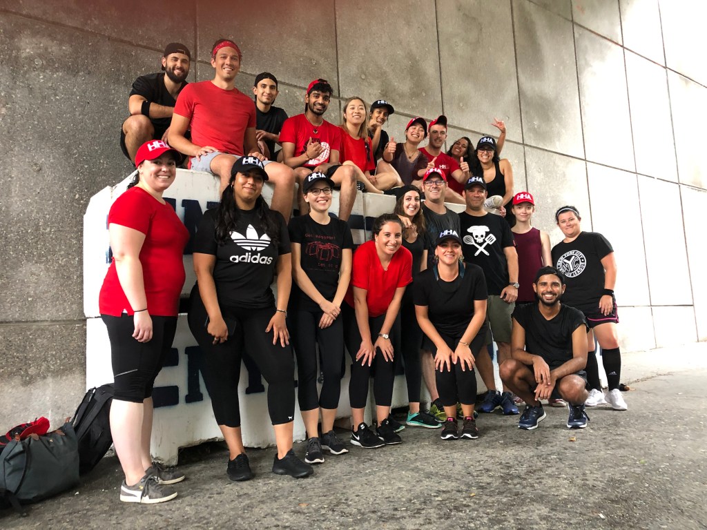 What better way to enjoy the summer and build team spirit than engaging in a team sport that pits the office against each other? We had our quarterly team building event last week and the activity this time around was Kickball. We fairly split into two teams: RED & BLACK; and got some snazzy new hats to go with our outfits. Needless to say, the competition was fierce and battle plans and office-appropriate threats were exchanged via email throughout the office days prior to the big game.