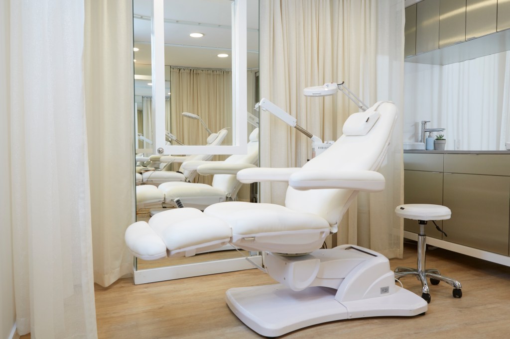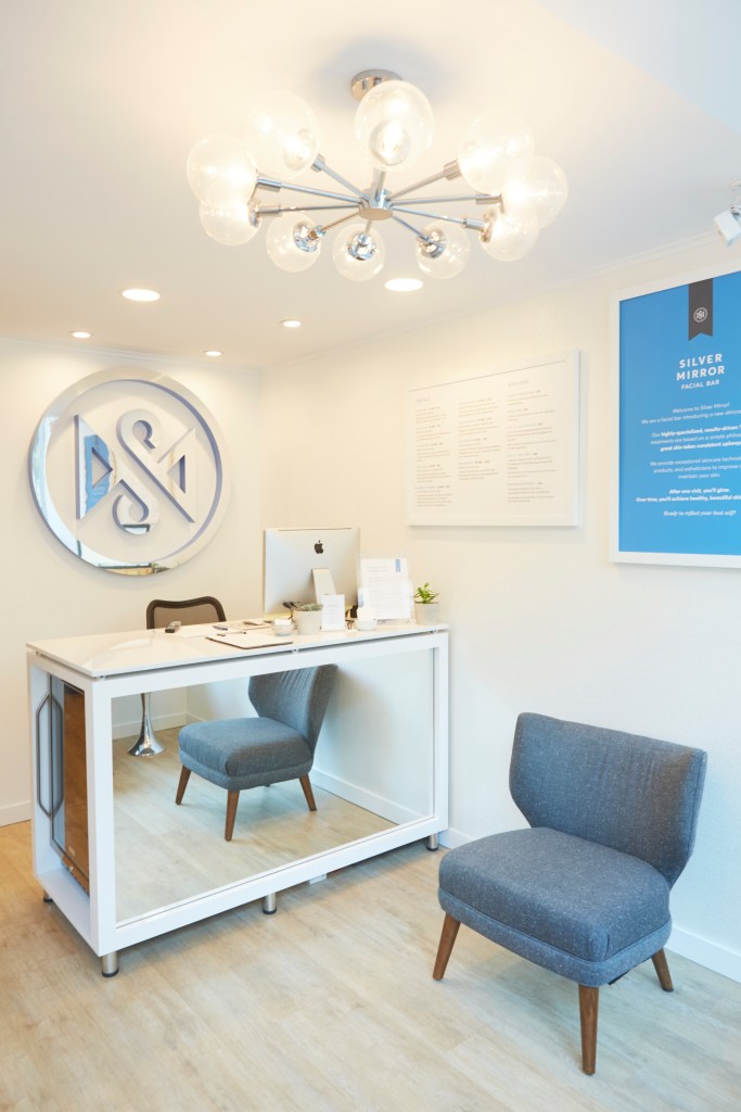 Part of the Silver Mirror design challenge was to create a space that provided a high level of client comfort while simultaneously meeting all of the pragmatic, technical and lighting needs of the technicians. In addition, there was a bring a modern convenient and simple feel to a normally stuffy and time-consuming process while also maintaining the necessary perception of a professional, medical and sterile environment. Custom treatment pods were designed to seamlessly accommodate and conceal places for tools, products, trash and disposables. The post treatment vanity provides many of the same details in a more public setting.